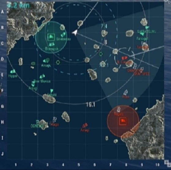 初心者の方は集中砲火を受け、火災の継続ダメージが発生するのに尻込みをしてしまい、島影に隠れたり前線から遥か彼方に位置している様子が見られます。しかし、これは戦艦の役割からしてタブーなのです。